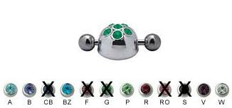 Passende Kugelhantel aus Chirurgenstahl in Standard-Stärke 1,6mm ist bereits dabei. Bitte Kristall-Farbe des Piercings wählen !